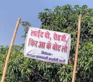 पहाड़पुर जलालपुर गांव में “लाइट दो, रोड दो, फिर आके वोट लो ” का लगाया बैनर