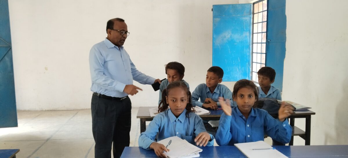 जांच के दौरान सवालों का सही जवाब मिलने पर बीइओ ने किया बच्चों का उत्साहवर्धन
