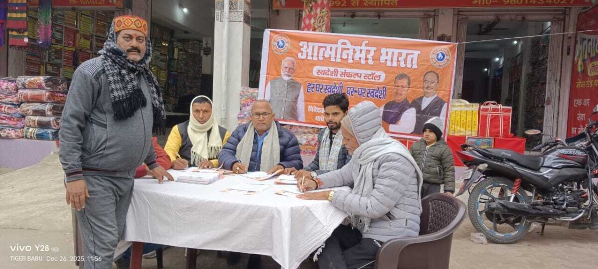 थावे. स्थानीय प्रखंड के थावे बाजार में शुक्रवार को आत्मनिर्भर भारत अभियान को लेकर भाजपा कार्यकर्ताओं द्वारा जागरूकता स्टॉल लगाया गया. यह स्टॉल पूर्वी भाजपा मंडल अध्यक्ष अजय कुमार सिंह की अध्यक्षता में आयोजित किया गया. स्टॉल के माध्यम से आत्मनिर्भर भारत निर्माण, स्वदेशी संकल्प तथा हर घर स्वदेशी अपनाने को लेकर लोगों को जागरूक किया गया. भाजपा कार्यकर्ताओं ने बाजार में आये सैकड़ों लोगों से संकल्प पत्र भरवाया और स्वदेशी वस्तुओं के उपयोग एवं प्रचार-प्रसार की अपील की. कार्यकर्ताओं ने बताया कि स्वदेशी उत्पादों को अपनाने से देश की अर्थव्यवस्था मजबूत होगी और स्थानीय कारीगरों व उद्यमियों को लाभ मिलेगा. इस कार्यक्रम में ओम प्रकाश राय भुट्टो, नारायण जी प्रसाद, वीरेश सिंह, मनन सिंह, राजेश बरनवाल सहित कई भाजपा कार्यकर्ता मौजूद रहे. कार्यक्रम के दौरान लोगों में स्वदेशी अपनाने को लेकर उत्साह देखा गया.