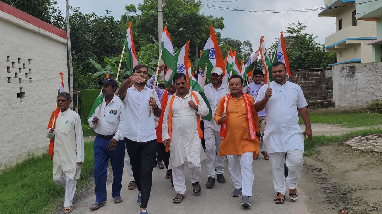 उचकागांव. दहीभाता में भाजपा के हर घर तिरंगा अभियान के तहत भाजपा कार्यकर्ताओं ने हाथों में झंडा लेकर तिरंगा यात्रा निकाली. यह तिरंगा यात्रा दहीभाता बलुआ टोला से शुरू होकर, स्टेट बैंक, कंपनी टोला, दहीभाता बाजार होती हुई दहीभाता हाइस्कूल तक गयी. इस दौरान प्रखंड अध्यक्ष दीपक कुमार के नेतृत्व में कार्यकर्ताओं ने लोगों को अपने घरों पर तिरंगा लगाने की अपील की. कार्यकर्ताओं ने कहा कि यह तिरंगा हमारा राष्ट्रीय ध्वज होने के साथ ही हमारे अस्मिता व आन बान शान का प्रतीक है. इसी तिरंगे की शान को लेकर हमारे देश के जवान देश की सीमा की रक्षा करते हुए अपनी जान न्योछावर कर देते हैं. इस तिरंगे की शान को बनाये रखना देश की सेना के जवानों के साथ-साथ हर आम नागरिक का भी कर्तव्य बनता है. मौके पर पार्टी के जिला उपाध्यक्ष प्रमोद गुप्ता, रामेश्वर सिंह, राजकुमार गुप्ता, मनीष सिंह सहित काफी संख्या में भाजपा कार्यकर्ता उपस्थित थे.