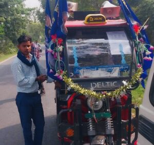 फुलवरिया. विधानसभा चुनाव के बीच लागू आदर्श आचार संहिता के उल्लंघन के मामले में फुलवरिया थाना क्षेत्र में प्रशासन ने सख्त कार्रवाई की है. बहुजन समाज पार्टी के प्रचार वाहन के रूप में उपयोग हो रहे एक इ-रिक्शा को पुलिस ने जब्त कर लिया. जानकारी के अनुसार, यह इ-रिक्शा रविवार को बथुआ बाजार क्षेत्र में झंडा, बैनर और पोस्टर लगाकर घूम रहा था. वाहन से पार्टी का प्रचार किया जा रहा था, जबकि इसकी अनुमति या प्रचार परमिट नहीं लिया गया था. चुनाव आयोग के निर्देशानुसार बिना अनुमति किसी वाहन से प्रचार करना स्पष्ट आचार संहिता का उल्लंघन माना जाता है. मामले की गंभीरता को देखते हुए सीओ वीरबल वरुण कुमार ने फुलवरिया थाने में लिखित शिकायत देकर तत्काल कार्रवाई सुनिश्चित की. पुलिस ने मौके पर इ-रिक्शा जब्त किया और थानाध्यक्ष कुंदन कुमार ने वाहन चालक और मालिक दोनों के खिलाफ नामजद प्राथमिकी दर्ज की.