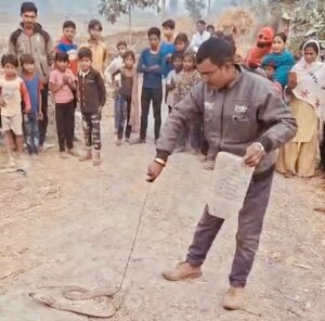 फुलवरिया में मुर्गी फार्म में घुसा कोबरा, एक घंटा बाद रेस्क्यू टीम ने पकड़ा