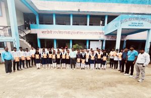 फुलवरिया में सहयोगी उच्च विद्यालय के छात्रों के बीच बांटी गयीं कॉपियां