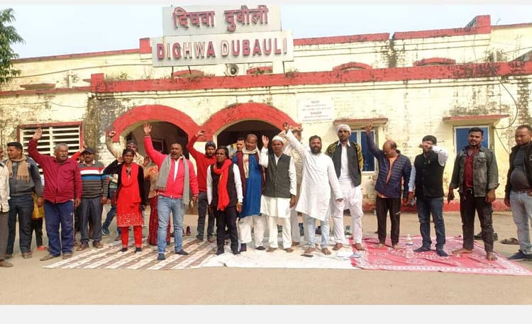 बैकुंठपुर. थावे-पाटलिपुत्र तथा गोमतीनगर-पाटलिपुत्र रेलखंड पर बंद पड़ी गाड़ी संख्या 03215 और 03216 को पुनः चालू कराने की मांग को लेकर बुधवार को दिघवा दुबौली स्टेशन पर एक दिवसीय धरना-प्रदर्शन किया गया. कार्यक्रम का नेतृत्व पूर्व जिला परिषद सदस्य रविरंजन कुमार उर्फ विजय बहादुर यादव ने किया. बड़ी संख्या में जुटे प्रदर्शनकारियों ने कहा कि पटना, गोरखपुर, लखनऊ एवं शक्ति पीठ थावे के बीच आवागमन के लिए यही दो ट्रेनें मुख्य साधन थीं. बिना किसी कारण के इनका परिचालन बंद कर देने से छात्रों, किसानों, मजदूरों, मरीज़ों और दैनिक यात्रियों समेत करीब 20 लाख लोगों को भारी परेशानियों का सामना करना पड़ रहा है. धरनार्थियों ने रेल महाप्रबंधक (वाराणसी मंडल) को संबोधित मांग पत्र सौंपते हुए चेतावनी दी कि यदि तत्काल ट्रेनों का परिचालन बहाल नहीं किया गया, तो व्यापक आंदोलन किया जायेगा. कार्यक्रम की अध्यक्षता प्रत्युष प्रकाश ने की. संचालन डाॅ मनोज कुमार यादव ने किया. अधिवक्ता अजय पासवान, अहिंसा सेना के संयोजक रामकुमार मांझी, जैन साहब, अमित एकलव्य, अभिनव कुमार सिंह, रेखा निषाद, मंटू कुमार यादव, बबलू मालाकार, रंजीत कुमार सिंह सहित कई वक्ताओं ने धरना को संबोधित किया. रेल प्रशासन की ओर से सुरक्षा के पुख्ता इंतजाम किये गये थे.