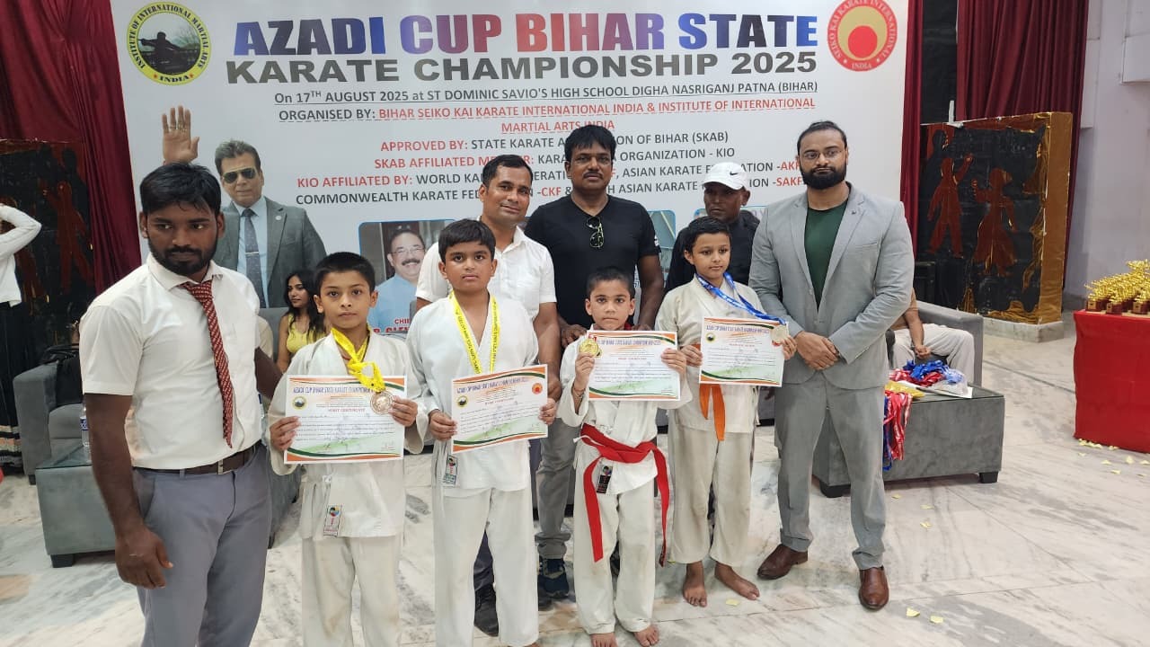 गोपालगंज. आजादी कप कराटे चैंपियनशिप पटना के दीघा के एक स्कूल में आयोजित हुई. इसमें गोपालगंज के खिलाड़ियों ने इसमें भाग लिया. इसमें टोटल तीन गोल्ड, एक सिल्वर, चार ब्रांज मेडल बच्चों ने हासिल कर स्टेट कराटे एसोसिएशन ऑफ बिहार के सभी मेंबर को धन्यवाद दिया. इन सभी बच्चों को राज्य कराटे संघ के महासचिव पंकज कमली एवं सूरज के हाथों मेडल और प्रमाण पत्र और मोमेंटो दिया गया. बच्चे काफी खुश नजर आये. गोल्ड मेडल में जय कुमार, फरहान अख्तर, माहिरा जफर, नित्य कुशवाहा, तो सिल्वर मेडल आभा कुमारी, ब्रांज मेडल नव्या पंडित, आनंद कुमार, जय कुमार यादव सभी ने अलग-अलग वेट कैटेगरी में हासिल किया. बच्चों को आजादी कप कराटे चैंपियनशिप में खेलकर बहुत ही अच्छा लगा. हमेशा समय-समय पर जिला लेवल के, राज्य लेवल और राष्ट्रीय लेवल के चैंपियनशिप में भाग लेते हैं.