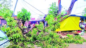 भोरे. शनिवार की सुबह अचानक आयी तेज आंधी और बारिश ने भोरे प्रखंड में एक बार फिर भारी तबाही मचायी. तेज हवा और बारिश के कारण कई जगहों पर पेड़ गिर गये.