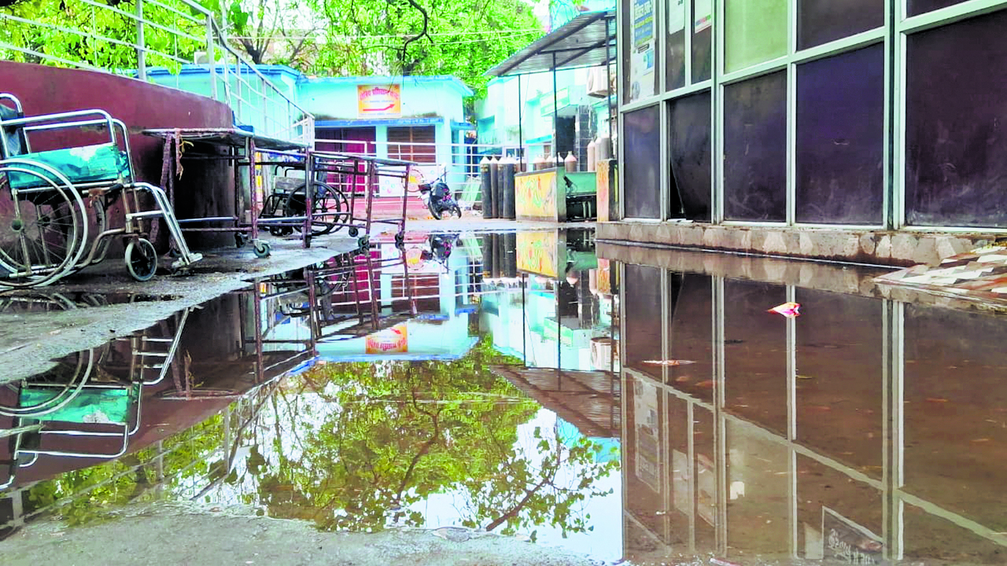 सदर अस्पताल के इमरजेंसी वार्ड के आगे जमा पानी
