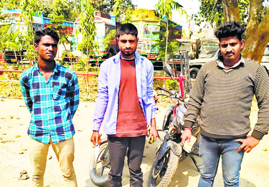 पूछताछ के बाद पुलिस ने मंगलवार को तीनों को जेल भेज दिया. तस्करों के खिलाफ दर्ज प्राथमिकी में बताया गया है कि थानाध्यक्ष किशोरी चौधरी के निर्देश पर एसआइ मुकेश कुमार सोमवार की शाम पंचदेवरी चौराहे पर वाहन जांच कर रहे थे. इसी दौरान भोरे की ओर से दो बाइकों से आ रहे तीन युवक पुलिस को देखकर भागने लगे. पुलिस ने पीछा कर तीनों को पकड़ लिया. जांच के क्रम में बुलेट तिवारी के पैकेट से 59 हजार सात सौ रुपये कैश तथा जगदीश तिवारी के पास से चाकू बरामद किया गया. दोनों बाइकों के कागजात भी नहीं थे. बाइकों के इंजन व चेचिस नंबर को घिस दिया गया था.