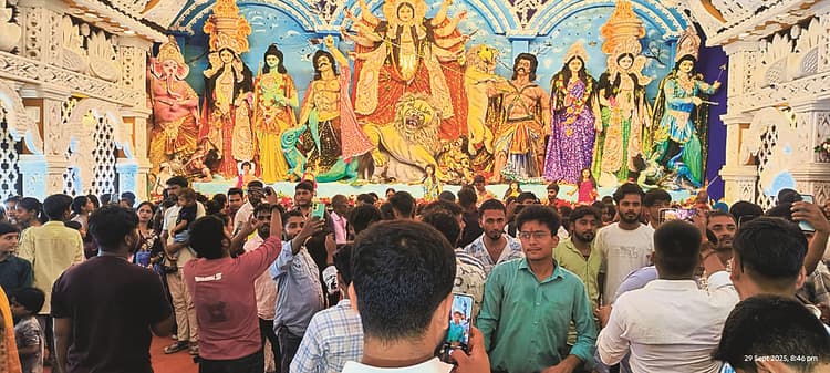 श्रद्धालु बिना छाते और बरसाती के भीगते हुए पंडालों तक पहुंचे और मां के चरणों में माथा टेककर सुख-शांति और समृद्धि की कामना की. शहर और गांव के पंडालों ने इस बार भी अपनी भव्यता से लोगों का मन मोह लिया. घोष मोड़ पर तिरुपति बालाजी मंदिर, बंजारी में अयोध्या के श्रीराम मंदिर, गंडक कॉलोनी रोड पर अमेरिका के श्रीकृष्ण मंदिर और हजियापुर में बेलूर मठ के स्वरूप में बने पंडाल आकर्षण का केंद्र बने. इसके अलावा अन्य पूजा समितियों के सजाये गये पंडालों को भी लोग अपलक निहारते रहे. शाम ढलते ही रंगीन झालरों और बिजली की लाइटिंग से नहाये पंडालों में देवी गीतों और भजनों की गूंज ने पूरे वातावरण को भक्ति रस में सराबोर कर दिया.