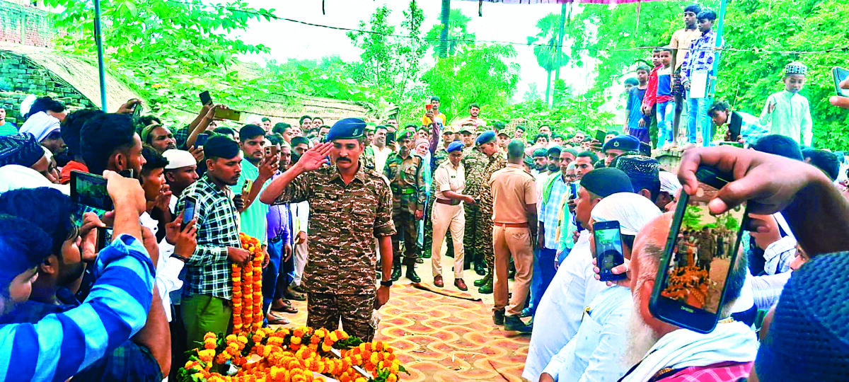 Gopalganj News : आतंकियों की गोली से शहीद हुए विजयीपुर के जवान हदीश अंसारी का पार्थिव शरीर पहुंचते ही गांव में उमड़ा जनसैलाब