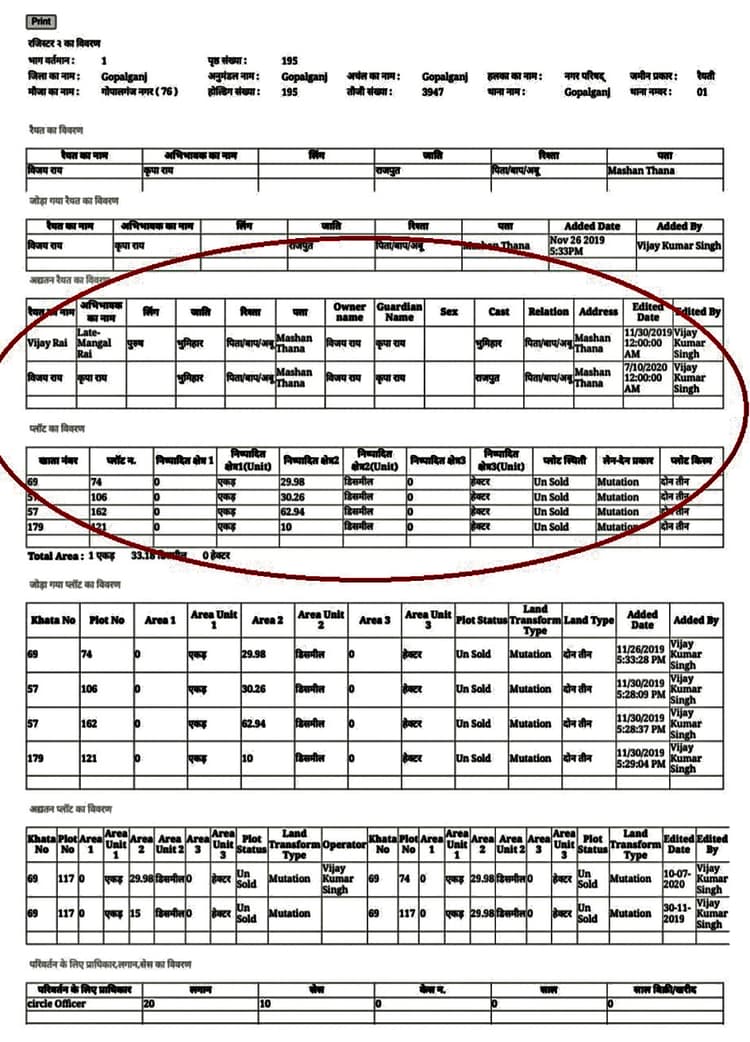 गोपालगंज. नगर परिषद के भीतर भी भू-माफियाओं की तगड़ी सेटिंग का खुलासा हुआ है. राजेंद्र बस स्टैंड के अरबों की जमीन पर वर्ष 2019 से ही फ्रॉड का खेल तेज हो गया था. अपने प्रभाव से जमीन को कब्जाने की कोशिश भी तेज हो गयी थी. नगर परिषद की इंटरनल जांच में रोज नये खुलासे हो रहे है. नगर परिषद के जिस जमीन को खतियान एवं पंजी-2 के आधार पर जमाबंदी दाखिल-खारिज घटाकर निलंबित सीओ गुलाम सरवर के द्वारा दो सितंबर 2024 की सुबह 10:44 बजे भू-माफिया अजय दुबे के नाम पर जमाबंदी परिमार्जन के तहत किया गया. तीन सितंबर को 1985 से 2025 तक की रेंट रसीद भी काट दी. उसी जमीन को वर्ष 2019 में तत्कालीन सीओ विजय सिंह के द्वारा कृपा राय के पुत्र विजय राय के नाम पर जमाबंदी की गयी थी. 26 व 30 नवंबर 2019 को जमाबंदी की गयी थी. उसी जमीन को 11 नवंबर 1980 को सासामुसा के रहने वाले चंद्रमा दुबे के पुत्र अजय दुबे के नाम पर मंगल राय पिता जंगी राय के द्वारा रजिस्ट्री बता कर दो सितंबर 2024 को निलंबित सीओ के द्वारा जमाबंदी परिमार्जन करा लिया गया. अब यह सभी दस्तावेज नगर परिषद के पास मौजूद है. अपर समाहर्ता आशीष कुमार सिन्हा ने बताया कि अभी दस्तावेजों की जांच हो रही है. जांच में चौंकाने वाले तथ्य सामने आ रहे हैं. जांच पूरा होने के बाद ही कुछ कहा जा सकता है. मालूम हो कि अपर जिला एवं सत्र न्यायाधीश -16 शेफाली नारायण के कोर्ट में मंगलवार को निलंबित सीओ गुलाम सरवर, सीआइ जटाशंकर प्रसाद व बर्खाश्त राजस्व कर्मचारी दिनेश मिश्र के अग्रिम जमानत पर सुनवाई होना है. कोर्ट की सुनवाई पर जिले के लोगों की नजर टिकी हुई है. राजेंद्र बस स्टैंड की जमीन बचाओ संघर्ष समिति का हुआ गठन राजेंद्र बस स्टैंड की जमीन बचाओ संघर्ष समिति का गठन सोमवार को हो गया. नगर परिषद के पूर्व चेयरमैन रहे चंद्र भूषण सिंह के नेतृत्व में कमेटी का गठन हुआ. इसमें शहर के प्रबुद्ध लोगों को शामिल किया गया है. कमेटी ने राजेंद्र बस स्टैंड की जमीन को भू-माफियाओं से बचाने के लिए संघर्ष सड़क से लेकर सदन तक करने का ऐलान किया है. गड़बड़ करने वाले अब बेनकाब होंगे. आरोप है कि शहर में सक्रिय भू-माफियाओं के द्वारा अंचल के अधिकारियों के सेटिंग कर सरकारी व शहर के कमजोर गरीब लोगों के जमीन को अपने नाम फर्जी कागजात बनाकर जमाबंदी करा कर उसपर कब्जा करने का खेल चल रहा है. ऐसे खेल को बेनकाब करने का निर्णय कमेटी ने लिया है. कमेटी प्रशासन के अधिकारियों से लेकर कोर्ट तक अपने पक्ष को मजबूती से रखेगी, जिससे शहर के आम लोगों का हित सुरक्षित रह सके.