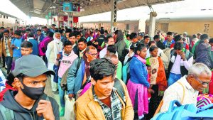 जैसे-तैसे ट्रेन में सवार हुए लोग