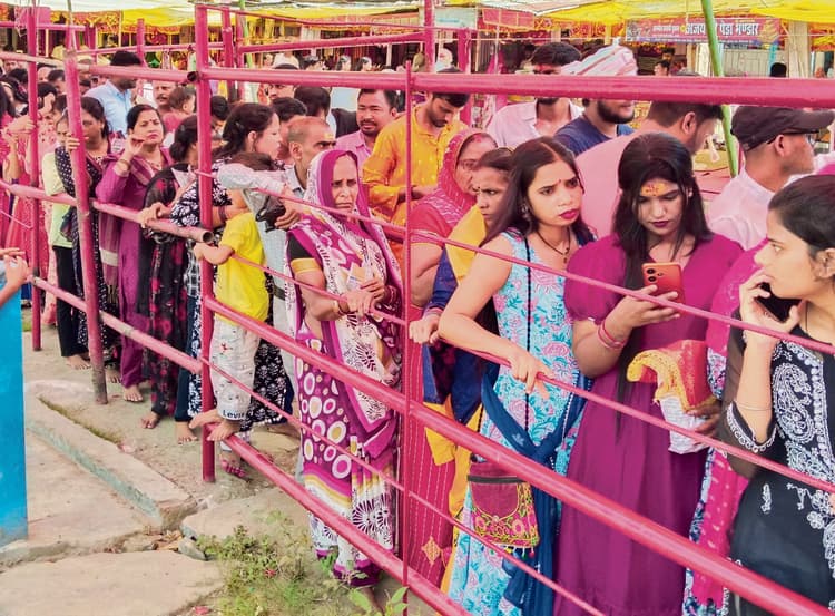 थावे. चैत्र नवरात्र की सप्तमी के मौके पर शुक्रवार को थावे मंदिर में मां सिंहासनी के दर्शन के लिए आस्था का सैलाब उमड़ पड़ा था. सुबह के तीन बजे से ही दर्शन के लिए लगी श्रद्धालुओं की लंबी कतार दोपहर के दो बजे तक रही.