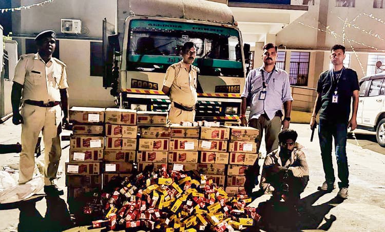 कुचायकोट. स्थानीय पुलिस वाहन जांच के दौरान अलग-अलग जगहों से 445 बोतल देसी व अंग्रेजी शराब बरामद की है. पुलिस ने इस दौरान एक स्कॉर्पियो को जब्त करते हुए दो तस्करों को गिरफ्तार किया. गिरफ्तार तस्करों में उत्तर प्रदेश के कुशीनगर जिले के तरेया सुजान थाना क्षेत्र के अहिरौलीदान गांव के पवन सिंह व पटना जिले के पत्रकार नगर थाना क्षेत्र के पटना कंकड़बाग से प्रमोद कुमार हैं. कुचायकोट थानाध्यक्ष आलोक कुमार ने बताया कि पुलिस बथना बनकटा पथ पर बंगरा गांव के पास वाहन जांच कर रही थी. इसी क्रम में उत्तर प्रदेश की तरफ से आ रहे एक स्कॉर्पियो को रोक कर तलाशी ली गयी, जिसमें से नौ कार्टन में भरकर रखी 405 पैकेट देसी शराब बरामद की गयी. पुलिस ने तुरंत स्कॉर्पियो जब्त करते हुए चालक को गिरफ्तार कर लिया. वहीं बलथरी स्थित पुलिस पोस्ट के पास पैदल आ रहे एक युवक के बैग की तलाशी ली गयी, जिसमें से 40 बोतल अंग्रेजी शराब बरामद की गयी. पुलिस ने उत्पाद अधिनियम के तहत प्राथमिकी दर्ज करते हुए अग्रेतर कार्रवाई के लिए गिरफ्त में आये तस्करों को कोर्ट में प्रस्तुत किया.डिस्क्लेमर: यह प्रभात खबर समाचार पत्र की ऑटोमेटेड न्यूज फीड है. इसे प्रभात खबर डॉट कॉम की टीम ने संपादित नहीं किया है