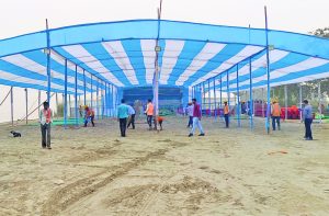 गोपालगंज. बैकुंठपुर प्रखंड के डुमरिया घाट पुल पर स्थित नारायणी रिवर फ्रंट पर नारायणी महोत्सव का उद्घाटन गुरुवार की शाम 4:00 बजे होगा. महोत्सव का उद्घाटन सूबे के उपमुख्यमंत्री विजय कुमार सिन्हा करेंगे. शिक्षा मंत्री सुनील कुमार, एससी-एसटी कल्याण मंत्री जनक राम तथा जिले के प्रभारी मंत्री कृष्णानंद पासवान भी उपस्थित रहेंगे. कला संस्कृति एवं युवा विभाग बिहार सरकार एवं जिला प्रशासन के संयुक्त तत्वावधान में आयोजित नारायणी महोत्सव 4:00 बजे से आयोजित होगा. सभी गण्यमान्य अतिथियों को सम्मानित करते हुए दीप प्रज्वलित कर समारोह का शुभारंभ होगा. स्वागत उद्बोधन के बाद गंगा आरती एवं शंखनाद के बाद सांस्कृतिक कार्यक्रम का आयोजन प्रारंभ होगा. इसमें मुख्य रूप से मुंबई के प्रसिद्ध सूफी गजल गायक निषाद अहमद की प्रस्तुति के साथ स्थानीय कलाकारों में सरस्वती कला केंद्र गोपालगंज का समूह नृत्य, भोजपुरी गायक अमित कुमार, भोजपुरी लोक गायिका अनु दुबे की मनमोहक प्रस्तुतियां समारोह के आकर्षण का केंद्र रहेंगी. डीएम प्रशांत कुमार सीएच ने अपील की कि कार्तिक पूर्णिमा की पूर्व संध्या पर आयोजित नारायणी महोत्सव डुमरिया घाट नारायणी तट भारी से भारी संख्या में पहुंचकर कार्यक्रम का आनंद लें. नारायणी महोत्सव में देश के प्रमुख कव्वाली गायक अल्ताफ रजा ने कार्यक्रम को रद्द कर दिया. उसके बाद प्रशासन का टेंशन बढ़ गया. जिला कला, संस्कृति विभाग के पदाधिकारी श्रीनिवास चंद्रमौली ने बताया कि कलाकार का चयन देर शाम तक जारी रहा. जिला प्रशासन की ओर से नारायणी महोत्सव को लेकर तैयारी पूरी कर ली गयी है. बुधवार को तैयारियों को अंतिम रूप दिया गया. शाम तक मुख्य मंच को सजाने-संवारने में मजदूर लगे हुए थे. एनएच-27 से कार्यक्रम स्थल तक पहुंचने वाली सड़कों की दोनों तरफ साफ-सफाई की गयी. दर्शक दीर्घा में कुर्सी लगाने का काम पूरा कर लिया गया. अधिकारियों ने भी तैयारियों का जायजा लिया. सुबह 4:00 बजे शुरू हो जायेगा पूर्णिमा का स्नान, बिहार, यूपी व नेपाल से पहुंचेंगे श्रद्धालु शुक्रवार की सुबह 4:00 से नारायणी नदी में कार्तिक पूर्णिमा का स्नान भी शुरू हो जायेगा. यहां बिहार, यूपी के अलावा पड़ोसी देश नेपाल से लाखों की संख्या में श्रद्धालु पहुंचेंगे. गोपालगंज के अलावा पड़ोसी जिले पश्चिमी चंपारण, पूर्वी चंपारण, सारण तथा सीवान से भारी संख्या में श्रद्धालु यहां पहुंचते हैं. स्नान के लिए पहुंचने वाले श्रद्धालुओं के लिए प्रशासन ने भी पुख्ता इंतजाम किया है. नदी की सुरक्षा के लिए बैरिकेडिंग की गयी है. एनडीआरएफ तथा एसडीआरएफ की टीमों को तैनात किया गया है. इसके अलावा टेंट, लाइट तथा चलंत शौचालय की व्यवस्था की गयी है.