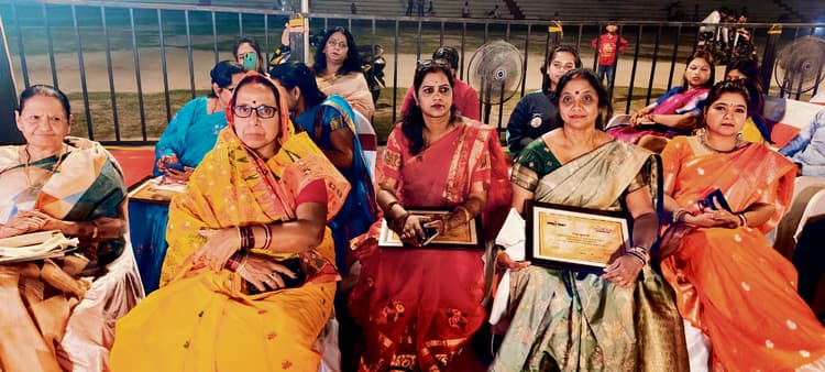 गोपालगंज़ शहर का मिंज स्टेडियम. बुधवार की शाम प्रभात खबर की ओर से अपराजिता सम्मान समारोह सह अखिल भारतीय कवि सम्मेलन का आयोजन हुआ. इसका विधिवत उद्घाटन एसडीओ डॉ प्रदीप कुमार, डीइओ योगेश कुमार, नाबार्ड के डीडीएम डॉ अनुपम लाल कुसुमाकर, ग्रामीण बैंक के रीजनल मैनेजर राजीव कुमार, जीविका की डीपीएम प्रियंका कुमारी, विधिज्ञ संघ के अध्यक्ष धीरेंद्र कुमार मिश्र उर्फ मुन्ना मिश्र, महासचिव मनोज मिश्र, महेंद्र महिला कॉलेज की प्राचार्या डॉ रुखसाना खातून ने संयुक्त रूप से किया. उसके बाद सम्मान समारोह की भव्य शुरुआत हुई.