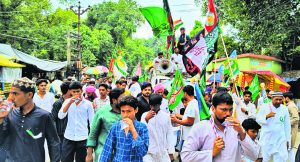 गोपालगंज. सोमवार को ईद मिलादुन्नबी (पैगंबर साहब की जयंती) पर निकले जुलूस-ए-मोहम्मदी में आपसी सद्भाव और देशप्रेम का जज्बा देखने को मिला. शहर में निकले जुलूस में शामिल लोग इस्लामिक झंडे के साथ राष्ट्रध्वज भी लहराते हुए चल रहे थे. इसमें हिंदू भाइयों ने भी बढ़-चढ़ कर सहयोग किया. सुबह नौ बजे से जुलूस शुरू हुआ, जो शहर के मुख्य मार्ग मौनिया चौक, पुरानी चौक, घोष मोड़, आंबेडकर चौक, जंगलिया मोड़ से होते हुए पोस्ट ऑफिस होकर पूरे शहर में भ्रमण किया. ईद मिलादुन्नबी पर निकलने वाला यह सबसे बड़ा जुलूस था. इसमें शहर के साथ ही आसपास के गांव के लोग भी शामिल हुए. हजारों की संख्या में लोग जुलूस में शामिल हुए. जुलूस में सबसे आगे आगे तिरबिरवां के बुद्धिजीवी लोगों का काफिला था. इसके पीछे ओलेमा नातख्वानी पढ़ते चल रहे थे. आलम ये था कि एक स्थान से जुलूस पास होने में ढाई से तीन घंटे लग रहे थे. पूरा जुलूस कई ग्रुपों में बंटा हुआ था. हर ग्रुप के सदस्य अलग-अलग रंग की पगड़ी पहने हुए चल रहे थे. हाथों में इस्लामिक और तिरंगा झंडा था, तो लबों पर सरकरा की आमद मरहबा और नार-ए-तकबीर वगैर नारे थे. मदरसों के बच्चे भी काफी तादाद मे मौजूद रहे. जुलूस में तिरबिरवां एवं मदरसा के तरफ से हेड मदरिस मौलाना सहिम शाहिद रहमानी, राजद के प्रधान महासचिव इम्तेयाज़ अली भुट्टो, नगर परिषद के चेयरमैन हरेंद्र कुमार चौधरी, मो. सगीर, राशिद हुसैन बबलू, इमरान अली, इरफान अली गुड्डू, अनस सलाम, शाहिद इमाम, सद्दाम हुसैन आदि शामिल थे. मीरगंज में जुलूस-ए-मुहम्मदी ने दिया प्रेम व एकता का संदेश मीरगंज. शहर व आसपास के क्षेत्रों में सादगी व सौहार्दपूर्ण माहौल में जश्न-ए-मिलादुन्नबी मनायी गयी. पैगंबर साहेब के जन्मदिन के जश्न की शुरुआत हथुआ मोड़ स्थित मदरसे से जुलूस निकाल कर की गयी. जुलूस-ए-मोहम्मदी में शहर के मुसलमान भाइयों सहित आसपास के क्षेत्रों के दोनों समुदायों के लोगों ने शिरकत की. शहर के प्रमुख चौक-चौराहों से गाजे-बाजे, तिरंगा व बैनर-पोस्टर के साथ निकाले गये जुलूस में प्रेम, एकता व भाईचारे का संदेश दिया गया. जुलूस में दोनों समुदायों के लोग व वार्ड पार्षद मौजूद थे. वहीं सुरक्षा की कमान आला अधिकारियों सहित थानाध्यक्ष किशोरी चौधरी सहित सुरक्षाबल के जवान संभाले हुए थे.