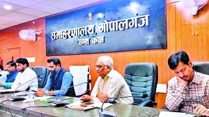 Gopalganj News : डीएम प्रशांत कुमार सीएच ने डीडीसी कुमार निशांत विवेक की उपस्थिति में सोमवार को समाहरणालय सभा कक्ष में सभी विभागों के जिला स्तरीय पदाधिकारी एवं वीडियो कॉन्फ्रेंसिंग के माध्यम से जुड़े सभी बीडीओ और सीओ के साथ साप्ताहिक समीक्षा एवं समन्वय बैठक की.