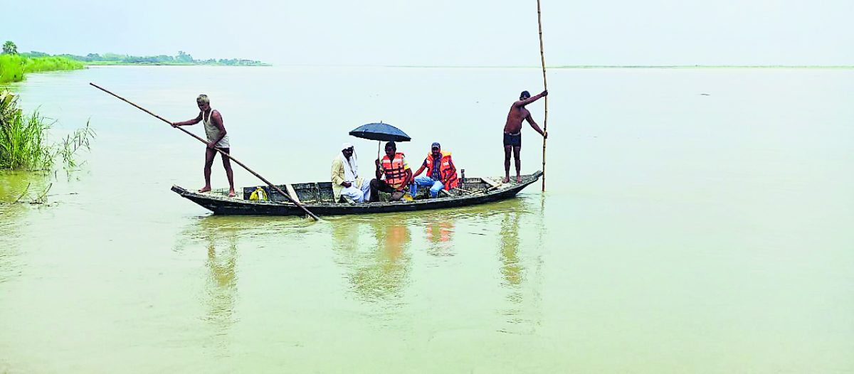 यूपी के अहिरौली दान से विशुनपुर तक नाव से तटबंध की निगरानी