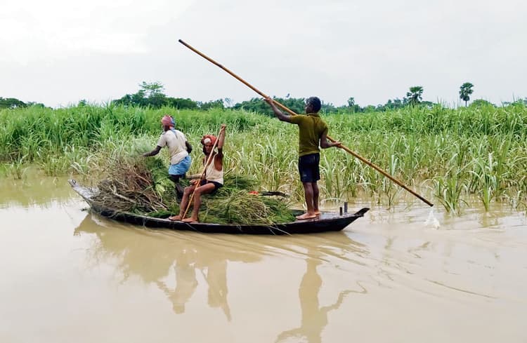 गोपालगंज. गंडक नदी के पांचवें दिन खतरे के निशान से नीचे आ गयी है. दियारे में अधिकतर गांवों में तबाही का मंजर है. गांवों में जाने वाली अधिकतर सड़कों पर पानी भरने के कारण नाव के अलावा बाकी संपर्क भंग हो चुके थे. पानी के घटने के बाद भी तबाही दिख रही है. 50 हजार से अधिक की आबादी बाढ़ की त्रासदी को झेल रहा है. नेपाल से पानी घट-बढ़ रहा है. शुक्रवार को वाल्मीकिनगर बराज से सुबह 1.06 लाख क्यूसेक डिस्चार्ज था, तो शाम को 92 हजार क्यूसेक पर पहुंच गया. गंडक नदी के जल स्तर के घटते-बढ़ते जल स्तर से कटाव का खतरा बरकरार है. नदी के मूड को समझते हुए जलसंसाधन विभाग के अभियंता भी मुस्तैद हैं. मुख्य अभियंता संजय कुमार, बाढ़ संघर्षात्मक बल के अध्यक्ष नवल किशोर सिंह, कार्यपालक अभिंयता प्रमोद कुमार शुक्रवार को भी तटबंध पर पहुंच कर स्थिति का आकलन किया. उधर, विशंभरपुर में नदी खतरे के निशान से 58 सेमी, तो टंडसपुर में पांच सेमी नीचे बह रही थी. पांचवें दिन नदी के खतरे के निशान से नीचे आने के बाद भी इलाके में तेजी से पानी कम हुआ है. घरों में पानी निकलने लगा है. नदी के तट पर बसे गांवों को छोड़ दें, तो बाकी गांवों सर्वाधिक परेशानी बरौली, सिधवलियां, बैकुंठपुर के गांवों में हैं. आंशिक रूप से तो कुचायकोट, सदर प्रखंड व मांझा भी तबाह हुआ है. नीचे पानी, ऊपर चौकी पर खाना बनाने को मजबूर हैं पीड़ित गंडक नदी के तट पर बसे मंगुरहा की यह तस्वीर स्थिति को बताने के लिए काफी है. पांच दिनों से घरों में घिरे राजकुमारी देवी के बच्चों को जब चूड़ा नहीं खाया गया, ताे वह टिन का चूल्हा चौकी पर रख कर बेसन घोल कर सब्जी और चावल बना दिया. बच्चों ने भरपेट खाया तो राजकुमारी के चेहरे पर सुकून जौट गया. राजकुमारी देवी के पति पंजाब में नौकरी करते हैं. जबकि राज कुमारी बच्चों के साथ रहती है. पिछले पांच दिनों तक पानी में घर घिरा था. वे इस बात से खुश है कि कल तक पानी घर से बाहर निकल जायेगा.