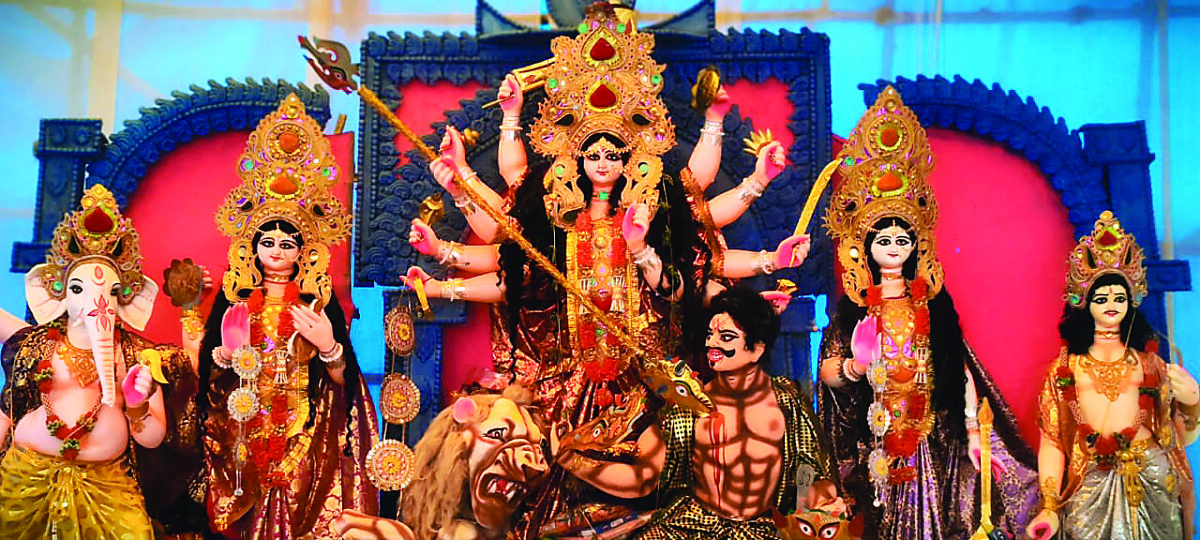 देश के बड़े मंदिरों के रूप वाले पंडालों में दिख रही मां की मनोहारी छवि