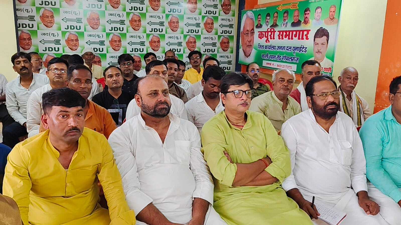 गोपालगंज. कर्पूरी सभागार में एक महत्वपूर्ण संगठनात्मक बैठक आयोजित की गयी. इस बैठक का नेतृत्व जिलाध्यक्ष आदित्य शंकर शाही ने किया जबकि बैठक की निगरानी जिला प्रभारी द्वारा की गयी. जदयू की जिला इकाई ने मुख्यमंत्री नीतीश कुमार के नेतृत्व में देशभक्ति की भावना को दोहराते हुए हमारी वीर सेना के प्रति अपना पूर्ण समर्थन व्यक्त किया है. मुख्यमंत्री ने देश के जांबाज सैनिकों का मनोबल बढ़ाते हुए कहा कि “जदयू परिवार पूरी तरह से देश की सेना के साथ खड़ा है और राष्ट्र रक्षा के लिए समर्पित है.” जदयू का पूरा परिवार इस संदेश के साथ देश के हर नागरिक को एकजुट होने का आह्वान करता है ताकि हम सभी अपने सैनिकों के अदम्य साहस और बलिदान का सम्मान कर सकें. वर्चुअल माध्यम से आयोजित इस बैठक में सभी विधानसभा प्रभारी, प्रकोष्ठों के जिला अध्यक्ष एवं प्रखंड अध्यक्षों ने भाग लिया. बैठक में संगठनात्मक गतिविधियों की समीक्षा, जमीनी स्तर पर कार्यों की प्रगति और आगामी योजनाओं पर चर्चा हुई.