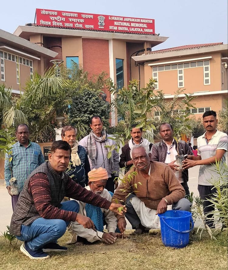 हथुआ. क्रांति के नियंता, छात्र आंदोलन के सूत्रधार लोकनायक जय प्रकाश नारायण की जन्मभूमि सारण के सिताबदियारा लाला टोला और यूपी के बलिया जिले में अवस्थित जयप्रकाश नारायण स्मारक प्रतिष्ठान परिसर में ग्रामीणों व कर्मियों के द्वारा पौधारोपण किया गया. इसमें जेपी स्मारक प्रतिष्ठान के सचिव अशोक कुमार सिंह, आलोक कुमार सिंह आदि ने संयुक्त रूप से दोनों स्थलों पर पौधा लगाकर पौधारोपण कार्यक्रम की शुरुआत की. इसके बाद जेपी प्रतिष्ठान की देखरेख कर रहे कर्मियों और ग्रामीणों ने आम, अमरूद, आंवला, बेल, अमलतास, नीम आदि के पौधों को अपने-अपने नाम पर लगाया. इसके पूर्व जेपी के जन्मभूमि पहुंचे पर्यावरण मित्र डॉ सत्य प्रकाश ने जेपी के आदमकद प्रतिमा पर पुष्प अर्पित कर नमन किया. इसके बाद पर्यावरण मित्र ने कहा कि जेपी की याद में दोनों पवित्र स्थलों को ग्रीन जोन बनाया जायेगा. जेपी एक क्रांति वीर थे. शिक्षक सह पर्यावरण मित्र ने जेपी पर रखी गई कई दुर्लभ पुस्तकों का भी अवलोकन किया. इस अवसर पर पर्यावरण मित्र ने ग्रामीणों को पौधा भेंट कर पौधा लगाने और उसका संरक्षण करने के लिए प्रेरित भी किया. मौके पर सेवानिवृत्त कृषि पदाधिकारी आनंद गोवर्धन सिंह, शिक्षक बलिराम कुमार गुप्ता, श्री भगवान मल्लाह, राम दुलार पासवान, रामनाथ साह, संजीत कुमार सिंह, मनोज कुमार यादव आदि थे.