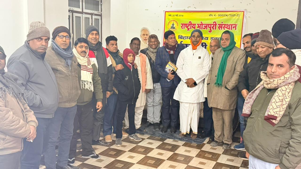 गोपालगंज. शहर के वार्ड संख्या 10 में भाजपा नेता जय हिंद प्रसाद के निवास पर राष्ट्रीय भोजपुरी अधिवेशन के आयोजन को लेकर एक महत्वपूर्ण बैठक हुई. बैठक की अध्यक्षता गोरख यादव गुंजन ने किया बैठक में राष्ट्रीय स्तर के कई प्रमुख लोग शामिल हुए. 18 जनवरी को अगली बैठक में अधिवेशन की तिथि तय होगी. प्रमुख रूप से डॉ. उमाशंकर साह राष्ट्रीय कार्यकारी अध्यक्ष, आचार्य डॉ. कुमार कौशल राष्ट्रीय भोजपुरी संस्थान के महासचिव मौजूद थे. इनके अलावा विमल कुमार, व्यास मनोज , राजेश , चंचल , पप्पू , सुनील श्रीवास्तव , जय प्रकाश शर्मा , ब्रज पाण्डेय , विशाल कौल , सिनेश्वर शाही , चंदन पांडेय , सत्येंद्र तिवारी सहित कई भोजपुरी प्रेमी और बुद्धिजीवी लोग बैठक में शामिल हुए. बैठक में राष्ट्रीय भोजपुरी अधिवेशन के उद्देश्य, रूपरेखा और आयोजन को सफल बनाने पर विस्तार से चर्चा हुई. सभी उपस्थित लोगों ने भोजपुरी भाषा और संस्कृति के प्रचार-प्रसार के लिये एकजुट होकर काम करने का संकल्प लिया.