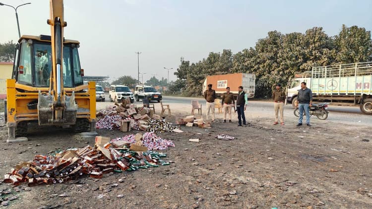 गोपालगंज. कुचायकोट थाना क्षेत्र के बलथरी चेकपोस्ट के समीप सोमवार को उत्पाद विभाग की ओर से बड़े पैमाने पर शराब का विनष्टीकरण अभियान चलाया गया. उत्पाद अधीक्षक के निर्देश पर आयोजित कार्रवाई के दौरान कुल 43 मामलों में जब्त 1,304 लीटर देसी एवं विदेशी शराब को जेसीबी मशीन से नष्ट किया गया. इसके साथ ही पुलिस थाने के दो मामलों में जब्त 464 लीटर शराब का भी विधिवत विनष्टीकरण किया गया. इस प्रकार कुल मिलाकर लगभग 1,768 लीटर शराब नष्ट की गयी. उत्पाद अधीक्षक अमृतेश कुमार ने बताया कि बिहार में पूर्ण शराबबंदी लागू होने के बावजूद कई लोग अवैध तरीके से इसकी तस्करी और सेवन में लिप्त पाये जाते हैं. ऐसे मामलों में नियमित अभियान चलाकर पुलिस और उत्पाद विभाग कार्रवाई कर रहा है. जब्त की गयी शराब का विनष्टीकरण न्यायालय के आदेश और निर्धारित प्रक्रिया के तहत किया जाता है, ताकि किसी भी परिस्थिति में शराब पुनः बाजार में नहीं पहुंच सके. शराब विनष्टीकरण की पूरी प्रक्रिया की वीडियोग्राफी भी करायी गयी, ताकि कार्रवाई का पूरा रिकॉर्ड उपलब्ध रहे. मौके पर मौजूद अधिकारियों ने कहा कि शराब कारोबार में शामिल लोगों पर लगातार नकेल कसी जा रही है और किसी भी स्तर पर कानून उल्लंघन बर्दाश्त नहीं किया जायेगा. विनष्टीकरण के दौरान उत्पाद अधीक्षक, मजिस्ट्रेट, थाना पुलिस के अधिकारी और बड़ी संख्या में कर्मी मौजूद रहे. अधिकारियों ने स्पष्ट किया कि बिहार मद्यनिषेध कानून का उल्लंघन करने वालों के खिलाफ अभियान भविष्य में और तेज किया जायेगा.