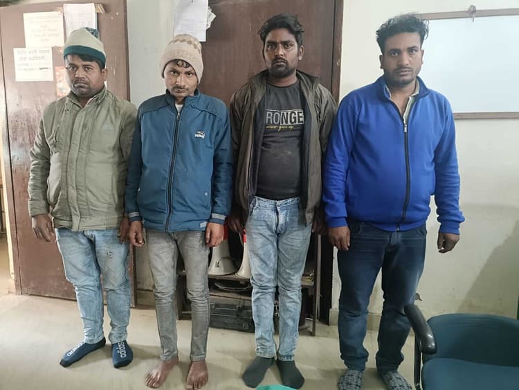 कुचायकोट. गोपालपुर थाना पुलिस ने कार्रवाई करते हुए कार और पिकअप को जब्त कर क्रूरता पूर्वक ले जाये जा रहे छह पशुओं को बरामद किया. इस दौरान पुलिस ने चार पशु तस्करों को भी गिरफ्तार किया. गिरफ्तार तस्करों में गोपालपुर थाना क्षेत्र के अहिरौली दुबौली टोला तकिया गांव निवासी नौशाद अहमद, कुर्बान अली और सलाउद्दीन अली तथा उत्तर प्रदेश के कुशीनगर जिले के तरेया सुजान थाना क्षेत्र के बहादुरपुर गांव निवासी रितेश शर्मा शामिल हैं. थानाध्यक्ष आशुतोष कुमार झा ने बताया कि पुलिस को गुप्त सूचना मिली थी कि एक पिकअप पर पशु तस्कर यूपी की ओर से पशुओं को लेकर आ रहे हैं. सूचना के आधार पर थाना क्षेत्र के जिलेबिया मोड़ के पास घेराबंदी कर दी गयी. इसी दौरान यूपी की ओर से आ रहे एक पिकअप और उसे एस्कॉर्ट कर रही एक कार को रोका गया. तलाशी के दौरान पिकअप में छह पशुओं को नशे की हालत में अत्यंत क्रूरता के साथ लादकर ले जाया जा रहा था. पूछताछ में पिकअप चालक ने आगे चल रही कार में तस्करों के शामिल होने की जानकारी दी. इसके बाद पुलिस ने दोनों वाहनों को जब्त कर चारों तस्करों को मौके से गिरफ्तार कर लिया. पुलिस ने सभी आरोपितों के विरुद्ध संबंधित धाराओं में प्राथमिकी दर्ज कर उन्हें न्यायिक हिरासत में भेज दिया है. मामले में आगे की कानूनी कार्रवाई जारी है.