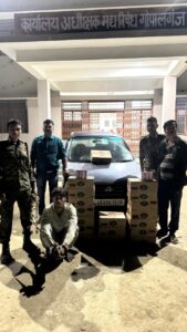 गोपालगंज. उत्पाद विभाग की टीम ने शुक्रवार को अवैध शराब तस्करी के खिलाफ 18 कार्टन देसी शराब के साथ एक तस्कर को गिरफ्तार कर लिया.