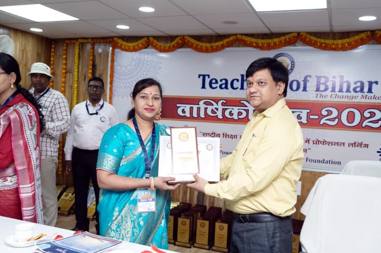 बरौली. बिहार के शिक्षकों के सबसे बड़े समुदाय टीचर्स ऑफ बिहार के छठे वार्षिकोत्सव में प्रखंड के दो शिक्षकों सम्मानित किया. मवि नेउरी की पुनीता कुमारी तथा उमावि लरौली के मनीष कुमार को स्कूल में बेहतर शिक्षण कार्य तथा छात्रों के सर्वांगीण विकास में सतत प्रयत्नशील रहने तथा बेहतर तकनीक से छात्रों में विकास करने को लेकर सम्मानित किया गया. यह कार्यक्रम एएन सिन्हा इंस्टीट्यूट, पटना के सभागार में समारोहपूर्वक मनाया गया. इस अवसर पर प्रखंड के दो प्रेरणादायी नवाचारी शिक्षकों को उनके नवोनमेषी योगदान के लिए राज्यस्तरीय सम्मान प्रदान किया गया. कार्यक्रम का उद्घाटन शिक्षा विभाग के अपर सचिव डॉ. एस. सिद्धार्थ, एससीइआरटी निदेशक सज्जन आर, टीचर्स ऑफ बिहार के संस्थापक शिव कुमार ने दीप प्रज्वलित कर किया. कार्यक्रम में विशिष्ट अतिथि शिक्षा सचिव अजय कुमार यादव रहे. प्रखंड के दोनों शिक्षकों के पटना में सम्मानित होने से सभी शिक्षकों में खुशी है. शिक्षिका पुनीता कुमारी ने बताया कि यह सम्मान उनके जीवन की एक अनमोल पूंजी है. वह काफी खुश हैं तथा उनकी कोशिश रहेगी कि वह और बेहतर करें और भविष्य में भी उन्हें सम्मान मिले.