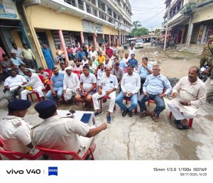 सासामुसा. पुलिस अधीक्षक अवदेश दीक्षित के निर्देश पर महावीरी अखाड़ा और सुरक्षा व्यवस्था को लेकर विशंभरपुर के नये थानाध्यक्ष मुकेंद्र कुमार ने सिपाया ढाला बाजार में व्यवसायियों और दुकानदारों के साथ बैठक की.
