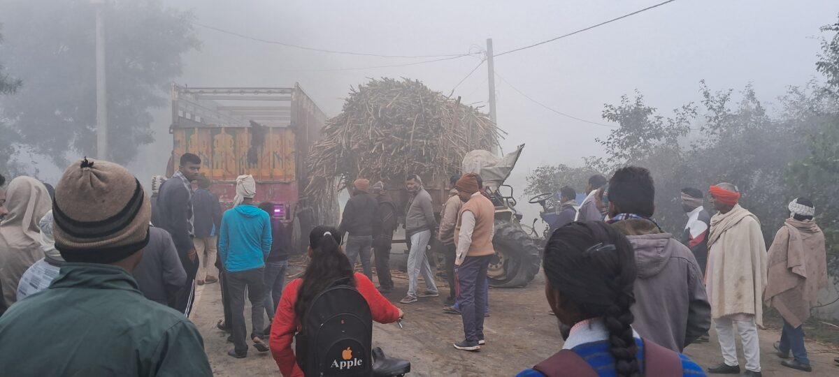 घने कोहरे में ट्रक-ट्रैक्टर की आमने-सामने हुई टक्कर, बाल-बाल बचे चालक