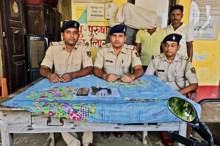 बैकुंठपुर. बैकुंठपुर थाने की पुलिस ने बाइक सवार दो बदमाशों को गिरफ्तार किया है. इनके पास से एक एक देसी पिस्टल, सवारी की एक बाइक, ओपो का एक मोबाइल व पांच कारतूस बरामद किये गये हैं. गिरफ्तार अपराधियों के बयान पर एक तीन लोगों के खिलाफ एफआइआर दर्ज की गयी है. गिरफ्तार युवकों में इसी थाने के हमीदपुर गांव निवासी राकेश सिंह और महम्मदपुर थाने के करसघाट गांव निवासी मंजीत कुमार शामिल हैं. थानाध्यक्ष राजीव रंजन सिंह ने बताया कि पुलिस टीम वारंटियों एवं अवैध शराब का धंधा करने वाले धंधेबाजों के विरुद्ध छापेमारी अभियान को लेकर निकाली थी. इस दौरान कतालपुर रेलवे लाइन के पास पक्की सड़क से एक बाइक पर सवार होकर दो युवक तेज गति से जा रहे थे. रोकने पर पुलिस बल को देखते ही बाइक सवार पीछे बैठा युवक बाइक से कूदकर भागने लगा. पुलिस बल ने घेराबंदी कर दोनों अपराधियों को पकड़ लिया. संदेहास्पद स्थिति में दोनों युवकों को तलाशी ली गयी. खेत की तरफ भागे व्यक्ति के कमर से एक लोडेड देसी पिस्टल व पांच कारतूस बरामद किये गये. थानाध्यक्ष ने बताया कि पूछताछ के दौरान जिस जगह से पिस्टल खरीदी गयी है, उस व्यक्ति के खिलाफ सहित कुल तीन लोगों पर थाने में आर्म्स एक्ट के तहत प्राथमिकी दर्ज की गयी है. छापेमारी टीम में पुलिस सब इंस्पेक्टर सूरज कुमार शर्मा, हेमंत कुमार, सौरभ सुमन व एएसआइ श्यामदेव सिंह शामिल थे. मामले में सब इंस्पेक्टर सूरज कुमार शर्मा के बयान पर प्राथमिकी दर्ज की गयी है. बताया कि गिरफ्तार अपराधियों को विशेष पूछताछ के लिए वरीय पुलिस पदाधिकारी के पास भेज दिया गया है.