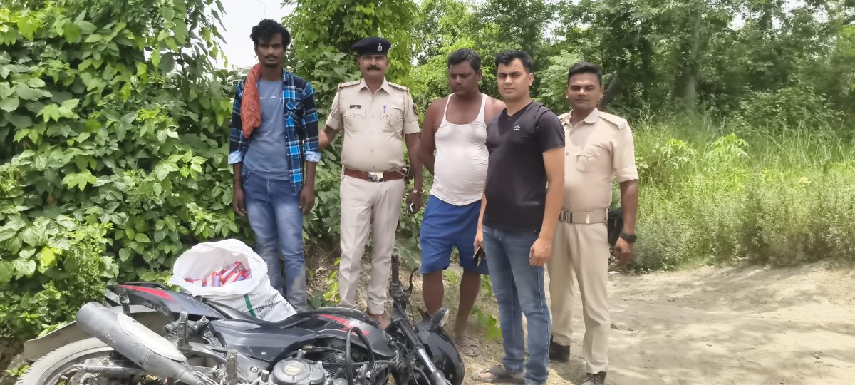चोरी की बाइक व 43.4 लीटर देशी शराब के साथ दो तस्कर गिरफ्तार