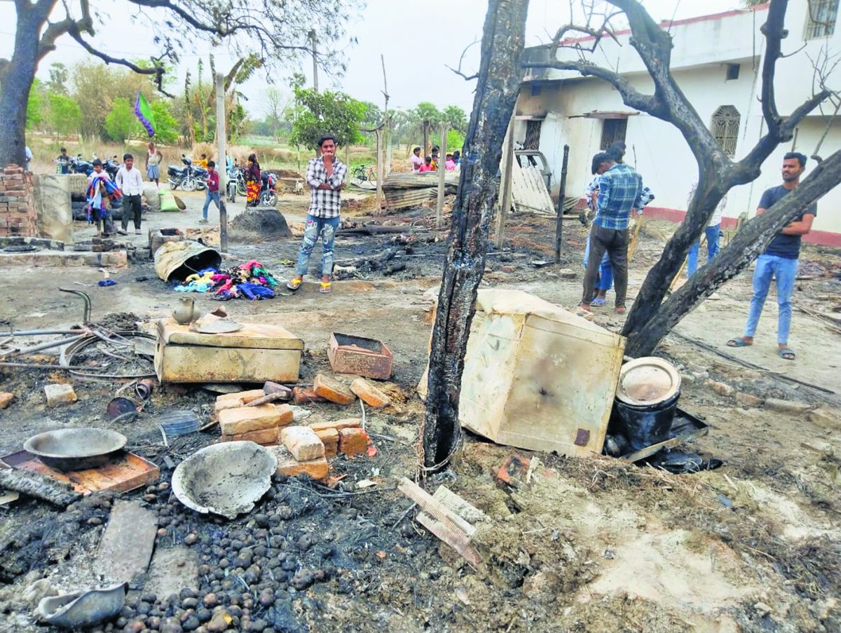 hajipur news. शॉर्ट सर्किट से लगी आग में 15 घर जले