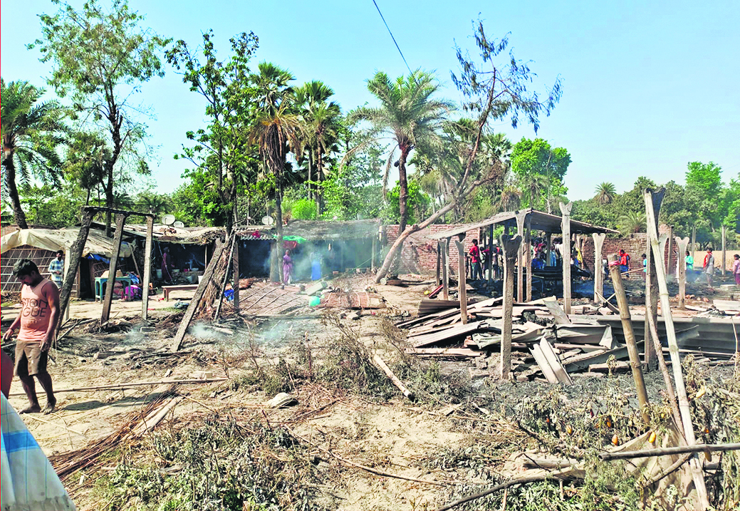 लालगंज नगर. लालगंज थाना क्षेत्र की बसंता जहानाबाद पंचायत के वार्ड नंबर 13 स्थित सहनी टोला गांव में रविवार की दोपहर भीषण अगलगी की घटना में 19 घर जलकर राख हो गये. घटना का कारण बिजली का शॉर्ट सर्किट बताया गया है. अचानक लगी आग से गांव में अफरा-तफरी मच गयी. आग की लपटें इतनी तेज थीं कि कुछ ही देर में घरों में रखा अनाज, कपड़े, गहने और नगद रुपये जलकर खाक हो गये. सूचना पर पहुंची फायर ब्रिगेड ने ग्रामीणों की मदद से घंटों मशक्कत के बाद आग पर काबू पाया.