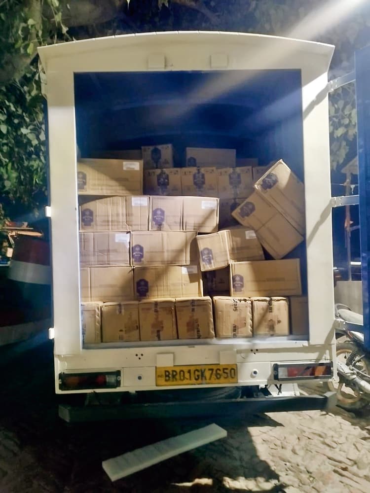 हाजीपुर. गंगाब्रिज थाना की पुलिस ने वाहन चेकिंग के दौरान हाजीपुर-पटना मार्ग स्थित पुराना टोल प्लाजा के पास से एक डाक पार्सल वैन जब्त की है. वैन में 198 कार्टन विदेशी शराब छिपाकर ले जायी जा रही थी. पुलिस ने वैन पर सवार चालक समेत दो धंधेबाजों को गिरफ्तार कर जेल भेज दिया है. इस मामले में पुलिस ने दो धंधेबाजों तथा गाड़ी के मालिक और चालक के विरुद्ध प्राथमिकी दर्ज कर अन्य धंधेबाजों की गिरफ्तारी के लिए छापेमारी शुरू कर दी है. इस संबंध में अपर थानाध्यक्ष गिरधरलाल ने बताया कि मंगलवार की देर रात करीब 9 बजे पुलिस को गुप्त सूचना मिली थी कि दो धंधेबाज पटना की ओर से एक डाक पार्सल वैन में भारी मात्रा में विदेशी शराब लोड कर हाजीपुर सप्लाई करने जा रहे हैं. सूचना मिलते ही पुलिस ने पुराना टोल के पास सघन वाहन चेकिंग अभियान शुरू कर दिया. इसी दौरान पटना से आ रही एक डाक पार्सल वैन को रोका गया. तलाशी लेने पर वैन से 198 कार्टन विदेशी शराब बरामद की गयी. पुलिस ने शराब लोड वैन को जब्त करने के साथ ही चालक और एक अन्य धंधेबाज को गिरफ्तार कर लिया. गिरफ्तार धंधेबाजों की पहचान पटना जिले के धनरुआ थाना क्षेत्र के बुद्धराम गांव निवासी विजय कुमार के पुत्र राहुल कुमार तथा खुसरुपुर थाना क्षेत्र के हरदास बिगहा गांव निवासी अशोक यादव के पुत्र जितेंद्र कुमार के रूप में हुई है. अपर थानाध्यक्ष ने बताया कि पूछताछ के दौरान धंधेबाजों ने बताया कि होली के मौके पर शराब की खेप हाजीपुर में खपाने के लिए ले जायी जा रही थी, तभी पुलिस ने वैन पकड़ ली. कड़ी गई शराब की कीमत स्थानीय बाजार में लगभग 20 लाख रुपये बताई गई है।
