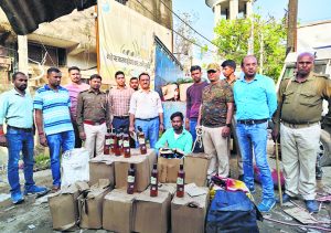 हाजीपुर. मद्य निषेध थाना की पुलिस ने छापेमारी कर महुआ थाना क्षेत्र के कन्हौली गांव स्थित एक ढाबे के पास से तरबूज लदी पिकअप वैन से भारी मात्रा में विदेशी शराब बरामद की है. पुलिस ने मौके से एक धंधेबाज को गिरफ्तार किया है. पुलिस ने वैन से 49 कार्टन विदेशी शराब बरामद की गयी है. इस संबंध में उत्पाद निरीक्षक सुरेश प्रसाद चौधरी ने बताया कि बुधवार को गुप्त सूचना मिली थी कि हाजीपुर-महुआ मार्ग स्थित कन्हौली के पास एक ढाबे पर तरबूज लदी पिकअप वैन में विदेशी शराब की खेप पहुंचने वाली है. सूचना मिलते ही उत्पाद अधीक्षक के निर्देश पर एक छापेमारी टीम गठित की गयी. टीम में उत्पाद निरीक्षक शंभू मिश्रा, अभिनव कुमार, अवर निरीक्षक अजीत कुमार पंडित, सहायक अवर निरीक्षक प्रमोद कुमार ठाकुर, भगवान शर्मा, भवेश कुमार, गणेश कुमार, पूजा कश्यप एवं पुलिस बल शामिल थे। पुलिस टीम ने कन्हौली के पास पीछा कर तरबूज लदी पिकअप वैन को पकड़ लिया. वैन की तलाशी लेने पर पता चला कि तरबूज के नीचे भारी मात्रा में विदेशी शराब छिपाकर रखी गयी थी. पुलिस ने वैन जब्त कर चालक को गिरफ्तार कर लिया. चालक की पहचान तिसीऔता थाना क्षेत्र के महथी धर्मचंद गांव निवासी शिवचंद्र सिंह के पुत्र धीरज कुमार के रूप में हुई है. पुलिस ने वैन से 49 कार्टन विदेशी शराब बरामद की है. गिरफ्तार चालक से पूछताछ के आधार पर प्राथमिकी दर्ज कर अन्य धंधेबाजों की गिरफ्तारी के लिए छापेमारी की जा रही है.