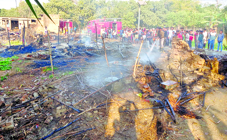 बिदुपुर प्रखंड की अमेर पंचायत के चकमैगर दलित बस्ती में बुधवार को हुई भीषण अगलगी की घटना में एक दर्जन लोगों के घर जल गये. घटना की सूचना पर पहुंची फायर ब्रिगेड ने स्थानीय लोगों की मदद से काफी मशक्कत के बाद आग पर काबू पाया. इस घटना में घर समेत घर में रखा सारा सामान जल गया. आग लगने का कारण बिजली का शॉर्ट सर्किट बताया जा रहा है. इस घटना के बाद अग्निपीड़ितों का रो-रोकर बुरा हाल है. जानकारी के अनुसार बुधवार की दोपरह संत शिरोमणि रविदास जयंती के अवसर पर बस्ती के लोग शोभायात्रा निकालने की तैयारी में जुटे हुए थे. इसी दौरान द्वारिक पासवान के घर के ऊपर से गुजर रहे बिजली के तार में अचानक शॉर्ट सर्किट की वजह से चिंगारी निकलने लगी. इससे पहले कि लोग कुछ समझ पाते, खपरैल मकान में आग लग गयी. देखते ही देखते आग की लपटों ने विकराल रूप ले लिया और आसपास के घरों को अपनी चपेट में ले लिया. यह देख वहां काफी संख्या में आसपास के लोग जुट गये और आग बुझाने का प्रयास करने लगे. साथ ही इसकी सूचना पुलिस और फायर ब्रिगेड को दी. सूचना मिलते ही फायर ब्रिगेड की टीम मौके पर पहुंच गयी. आग पर काबू पाने के लिए दमकल की दो गाड़ियों को मौके पर बुलाया गया. फायर ब्रिगेड ने स्थानीय लोगों की मदद से घंटों मशक्कत के बाद आग पर काबू पाया. बताया जाता है कि अगलगी की इस घटना में बीरन पासवान, लालमुनि देवी, जीतू पासवान, लालजी पासवान, विश्वनाथ पासवान, धर्मेंद्र पासवान, नवीन पासवान, भूषण पासवान, माला देवी, गणेश पासवान, श्यामबाबू पासवान, बिजनंदन पासवान समेत एक दर्जन लोगों के घर व घर में रखा सारा सामान जल गया. मुखिया राम जतन राम सहित अन्य लोगों ने पीड़ित परिवार को अविलंब मुआवजा देने की मांग प्रशासन से की है.डिस्क्लेमर: यह प्रभात खबर समाचार पत्र की ऑटोमेटेड न्यूज फीड है. इसे प्रभात खबर डॉट कॉम की टीम ने संपादित नहीं किया है