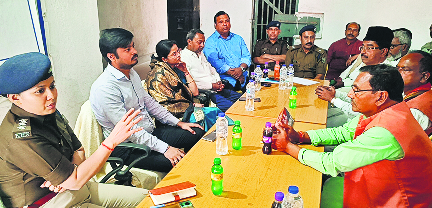 महुआ. होली और जुमे की नमाज को लेकर गुरुवार को महुआ थाना परिसर में शांति समिति की बैठक हुई. बैठक में बताया गया कि त्योहार के दौरान डीजे व अश्लील गाने बजाने पर पूरी तरह से प्रतिबंध रहेगा. इसका उल्लंघन करने वाले के विरुद्ध सख्त कार्रवाई की जायेगी. वहीं, एसडीपीओ कुमारी दुर्गा शक्ति ने कहा कि त्योहारों पर असामाजिक तत्वों द्वारा कभी-कभी सोशल मीडिया पर गलत पोस्ट करके अफवाह फैला दी जाती है, जिसके कारण परेशानी बढ़ जाती है. उन्होंने बैठक में शामिल जनप्रतिनिधियों तथा सामाजिक कार्यकर्ताओं से अफवाह व झूठी खबरों से सावधान रहने तथा इसकी सूचना तुरंत पुलिस-प्रशासन को देने की अपील की. उन्होंने कहा कि सोशल मीडिया पर पुलिस की कड़ी निगरानी है. अफवाह फैलाने वालों के विरुद्ध सख्त कार्रवाई की जायेगी. एसडीओ किसलय कुशवाहा ने सभी लोगों से शांतिपूर्ण माहौल में भाईचारे के साथ होली का त्योहार मनाने की अपील की गयी. बैठक में प्रखंड विकास पदाधिकारी संजीत कुमार, सर्किल इंस्पेक्टर सत्येंद्र कुमार, थानाध्यक्ष सुभाष प्रसाद, प्रखंड मुखिया संघ अध्यक्ष अमोद कुमार, नगर परिषद महुआ के सभापति नवीनचंद्र भारती, उपसभापति रोमी यादव, मुखिया दिलीप पासवान, सुकेश्वर दास, अभिमन्यु सिंह, दिलीप राय, अजय भूषण दिवाकर, रमैया सिंह, अरुण सिंह, पारसनाथ मणि, सरपंच राजेंद्र राय, मो मुस्लिम, मो वसीम, मो सादिक, मो दिलशाद, डॉ शकलदेव राम आदि लोग शामि थे.