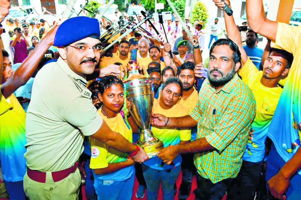 hajipur news. वीमेंस एशियन हॉकी चैंपियनशिप ट्रॉफी गौरव यात्रा का हुआ भव्य स्वागत
