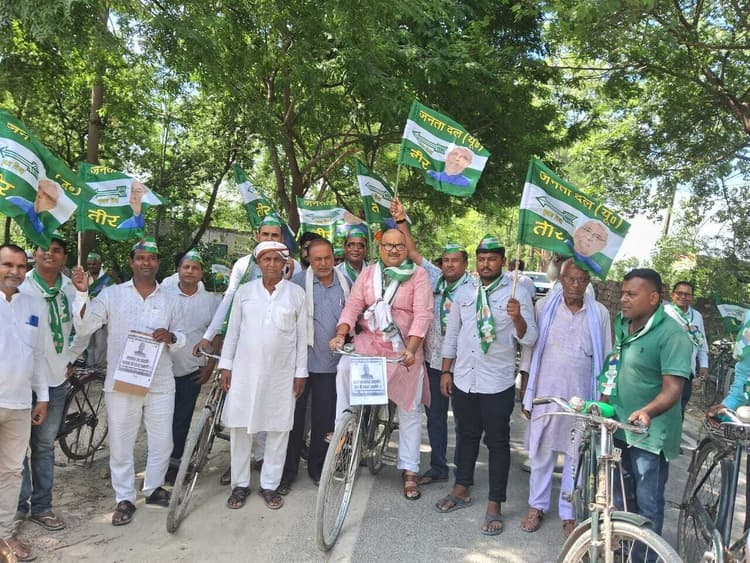 वैशाली. प्रखंड क्षेत्र के मदरना गांव से जदयू कार्यकर्ताओं ने मतदाता जागरूकता के लिए साइकिल रैली निकाली. रैली में शामिल कार्यकर्ताओं ने प्रखंड क्षेत्र के कई गावों का भ्रमण कर लोगो को जागरूक किया. साइकिल रैली का नेतृत्व करते हुए विधायक सिद्धार्थ पटेल ने कहा कि पुनरीक्षण को लेकर बीएलओ द्वारा किए जा रहे कार्य में गणना प्रपत्र भरकर जमा कर दे. मतदाता सूची में नाम जुड़वाने के लिए बीएलओ से मिलें. साइकिल रैली के दौरान जदयू कार्यकर्ताओं ने सत्यापन जरूर कराएंगे, औरों को भी समझायेंगे, हर घर तक हम जाएंगे, मतदाताओं को हम जगाएंगे, संकल्प हमारा टूटे नहीं, एक भी मतदाता छूटे नहीं, वोट हमारा अधिकार है, सत्यापन ही उपचार है, सही नाम कटे नही, फर्जी नाम जुटे नही आदि स्लोगनों से आम जनता को जागरूक किया. रैली मे जदयू प्रखंड अध्यक्ष दीपक कुमार सिंह, मुखिया राजकिशोर सिंह, संजीव कुमार, राजेश राय आदि कार्यकर्ता शामिल थे.