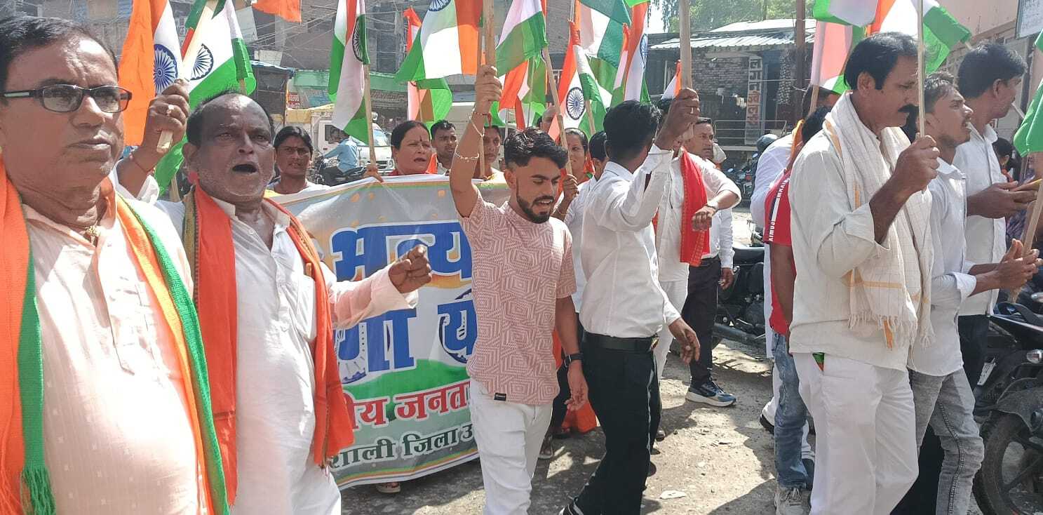 महुआ. महुआ बाजार में भाजपा कार्यकर्ताओं ने तिरंगा यात्रा निकाल कर लोगों को राष्ट्र के प्रति जागरूक किया. इस दौरान भारत माता की जय, वंदे मातरम् आदि नारों से पूरा क्षेत्र घंटों गूंजते रहा. गुरुवार की दोपहर ओसी पैलेस परिसर से भाजपा नेता संजीव जायसवाल उर्फ बब्लू चौधरी, दीपुदत्त कुमार आदि के नेतृत्व में निकाली गयी यात्रा मिश्रा पंप से देसरी मार्ग होते पुरानी बाजार, थाना चौक, पुल रोड भ्रमण करते हुए गांधी स्मारक पहुंच कर राष्ट्रपिता महात्मा गांधी के चित्र पर माल्यार्पण किया. इस कार्यक्रम में सुरेंद्र प्रधान, रमैया सिंह, शिवचंद्र राय, सोनू कुशवाहा, राजकमल, मुकेश कुमार, पिंटू पटेल के साथ अन्य लोग शामिल थे.