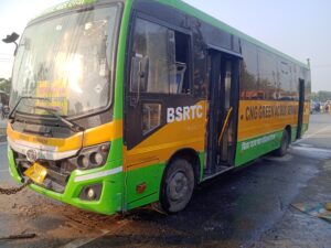 hajipur news. इमादपुर चौक पर यात्रियों से भरी सीएनजी बस में लगी आग, सभी यात्री सुरक्षित