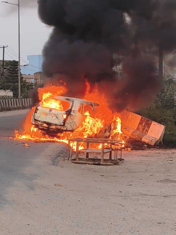 हाजीपुर. हाजीपुर-छपरा मुख्य मार्ग के रामाशीष चौक ओवरब्रिज के समीप गुरुवार की शाम उस समय अफरा-तफरी मच गयी, जब एक लग्जरी कार में अचानक आग लग गयी. कार में आग लगते देख कार चालक ने गाड़ी से कूद कर अपनी जान बचाई, हालांकि जबतक कार चालक कुछ समझ पता कार आग का गोला बन चुका था. घटना के बाद आसपास के लोग जुट गए.लोगों ने तत्काल घटना की सूचना सदर थाने की पुलिस को दी. मिली जानकारी के अनुसार हाजीपुर- छपरा मुख्य मार्ग के रामाशीष चौक ओवर ब्रिज के पश्चिमी छोड़ के समीप एक चलती लग्जरी कार में अचानक आग लग गयी. कार के अगले हिस्से से आग की लपटे उठते देख कार चालक कार तत्काल रोक कर कार से बाहर निकल कर अपनी जान बचाई. जबतक कार चालक कुछ समझ पाता कार से भीषण लपटे उठने लगी थी. इधर, कार में लगी भीषण आग की घटना के बाद आसपास के कई लोग जुट गये थे. लोगों ने तत्काल घटना की सूचना सदर थाने की पुलिस को दी. घटना की सूचना मिलते ही फायर ब्रिगेड और पुलिस की टीम मौके पर पहुंच कर कार में लगी आग को बुझाने में जुट गये. हालांकि तब तक फायर ब्रिग्रेड की टीम आग पर काबू पाती कार पूरी तरह से जलकर खाक हो चुकी थी. कार में आग किस कारण से लगी फिलहाल इसका खुलासा नहीं हो सका. इस संबंध में सदर थानाध्यक्ष योशादानंद पाण्डेय ने बताया कि रामाशीष चौक ओवरब्रिज के समीप एक कार में आग लगने की सूचना मिली थी. सूचना मिलते ही फायर ब्रिगेड और पुलिस की टीम मौके पर पहुंच कर कार में लगी आग को बुझा लिया गया.