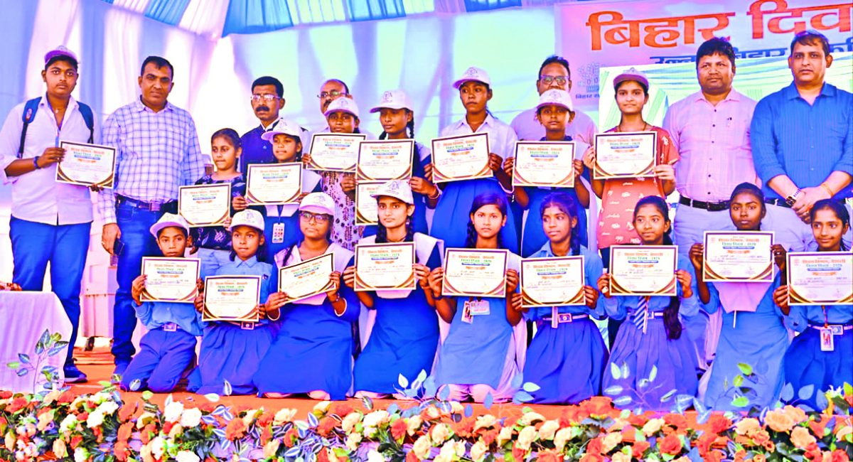 बिहार दिवस के अवसर पर जिला प्रशासन एवं शिक्षा विभाग की ओर से स्थानीय जीए इंटर स्कूल के परिसर में आयोजित हुई प्रतियोगिताएं