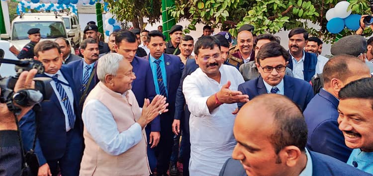 . मुख्यमंत्री नीतीश कुमार गुरुवार की शाम जदयू प्रदेश अध्यक्ष उमेश कुशवाहा के यहां आयोजित मांगलिक कार्यक्रम में शामिल होने के लिए जंदाहा प्रखंड की मुकुंदपुर भाथ पंचायत के कजरी बुजुर्ग स्थित उनके आवास पर पहुंचे. मुख्यमंत्री ने उप मुख्यमंत्री सम्राट चौधरी व मंत्री विजय कुमार चौधरी आदि के साथ पंडाल में घूम कर लोगों का अभिवादन किया तथा प्रसाद ग्रहण किया. यहां करीब दस मिनट तक रुकने के बाद वे सड़क मार्ग से लौट गये. मुख्यमंत्री के आगमन को लेकर सुरक्षा की चाक-चौबंद व्यवस्था की गयी थी. 22 नवंबर को प्रदेश अध्यक्ष के भतीजे की शादी है. इसी को लेकर मांगलिक कार्यक्रम का आयोजन किया गया है. केंद्रीय मंत्री चिराग पासवान, नीतीश मिश्रा, सुमित कुमार सिंह, जदयू के राष्ट्रीय महासचिव मनीष वर्मा, पातेपुर विधायक लखेंद्र पासवान, लालगंज विधायक संजय कुमार सिंह, वैशाली विधायक सिद्धार्थ पटेल, उजियारपुर की पूर्व सांसद अश्वमेघ देवी समेत कई मंत्री-विधायक जदयू प्रदेश अध्यक्ष के घर आयोजित मांगलिक कार्यक्रम में शामिल होने पहुंचे.उमेश कुशवाहा के पैतृक आवास पर 15 नवंबर से मांगलिक कार्यक्रम जारी है. 15 नवंबर को कुल देवता की पूजा, 16 नवंबर को बैरागम कुल देवता की पूजा, 17 नवंबर को स्वामी के पूजन एवं बाबा भुइयां बाबा का न्योतन, 18 नवंबर को बाबा भुइया की पूजा, 19 नवंबर से 24 घंटे का अष्टयाम यज्ञ, रात्रि में विवाह कीर्तन का आयोजन किया गया था. गुरुवार की दोपहर से प्रीतिभोज का आयोजन किया गया. इस कार्यक्रम में कई मंत्री विधायक व वरीय नेता व कार्यक्रम शामिल हुए. प्रदेश अध्यक्ष उमेश सिंह कुशवाहा, जिला अध्यक्ष सुभाष चंद्र सिंह, राज्य परिषद सदस्य मनोज पटेल, प्रदेश महासचिव पूर्व प्रमुख रामनाथ रमन, जिला उपाध्यक्ष अशोक कुमार चौधरी,प्रखंड अध्यक्ष अनुपलाल सिंह, प्रखंड उपाध्यक्ष पूर्व मुखिया मुकेश राय, प्रखंड उपाध्यक्ष राम शोभित सिंह, सुभाष कुशवाहा, यशवंत कुमार सिंह उर्फ चिंटू सिंह आदि अतिथियों के स्वागत में जुटे हुए थे.