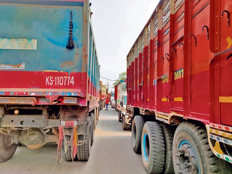 पिछले तीन दिनों से जाम के कारण रेंग रही गाड़ियां